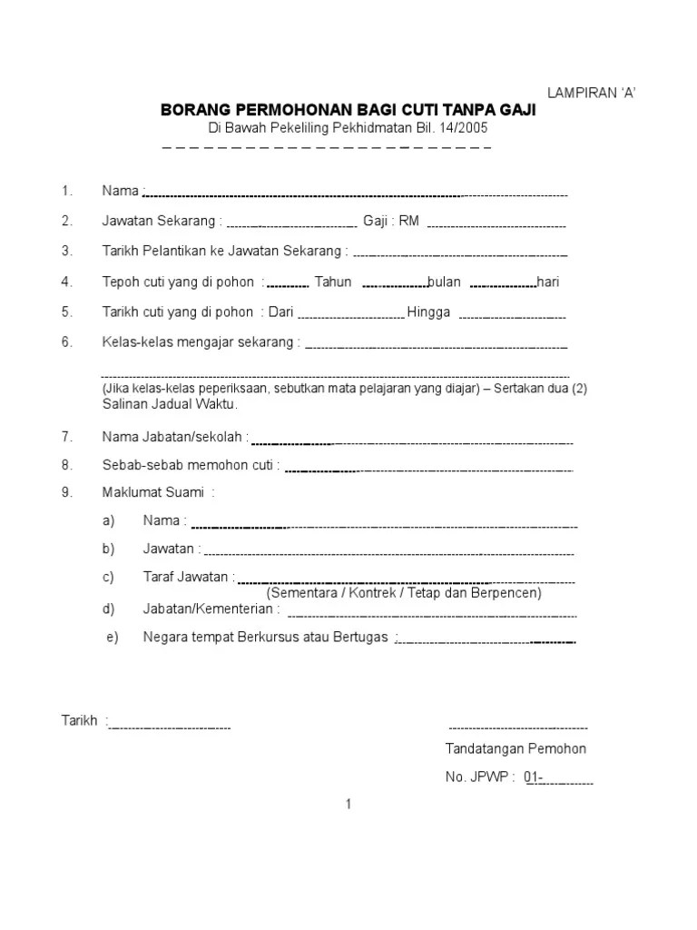Contoh Surat Permohonan Cuti Tanpa Gaji Urusan Peribadi : Contoh Surat Permohonan Cuti Tanpa Gaji Guru Contoh Surat. Nov 05, 2016 · contoh report latihan industri 2016 politeknik dat 1. Jan 13, 2021 · duit bpn 2. One borang e ready software you can consider from the list is talenox.
